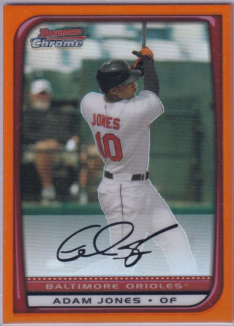 2008 Bowman Chrome ADAM JONES Orange Refractor Parallel 23/25 #9 Orioles #9 [eBay] | $99.99 | Report It |