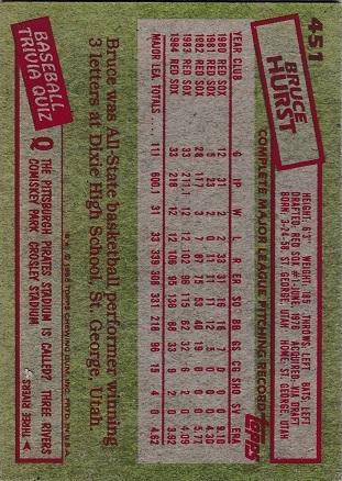 Bruce Hurst #451 (1985 Topps) Details