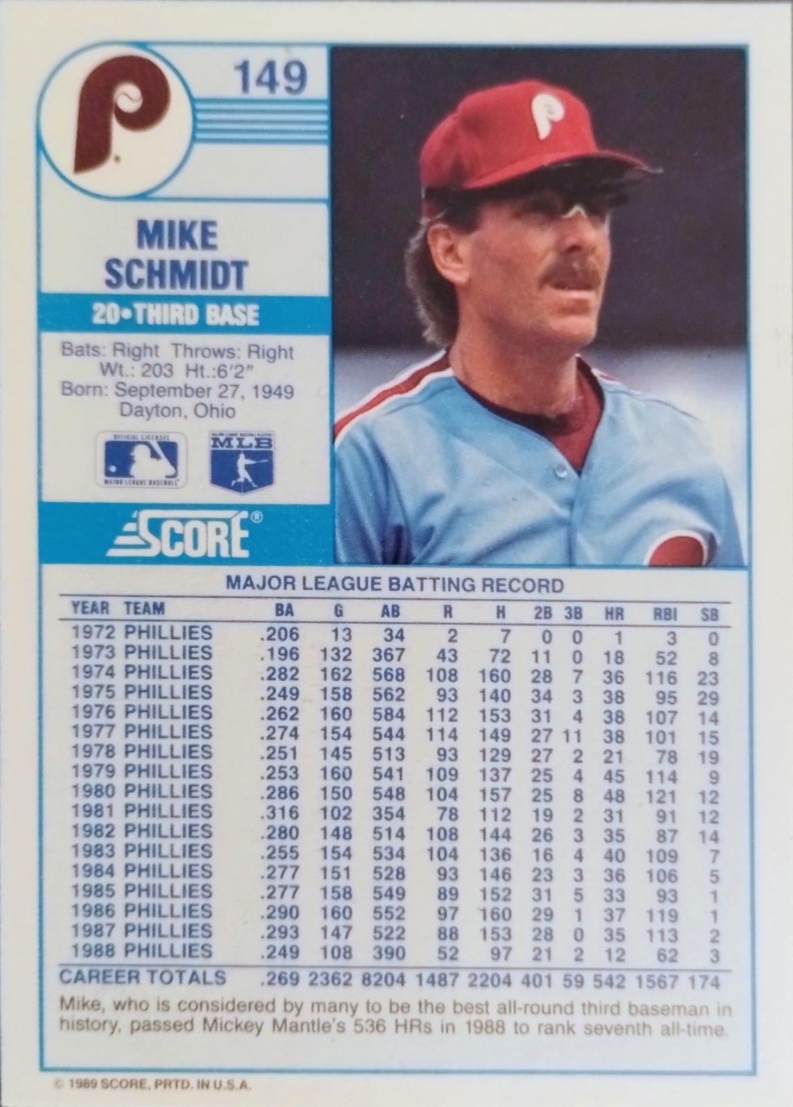 Full Price Guide: Mike Schmidt #149 (1989 Score)