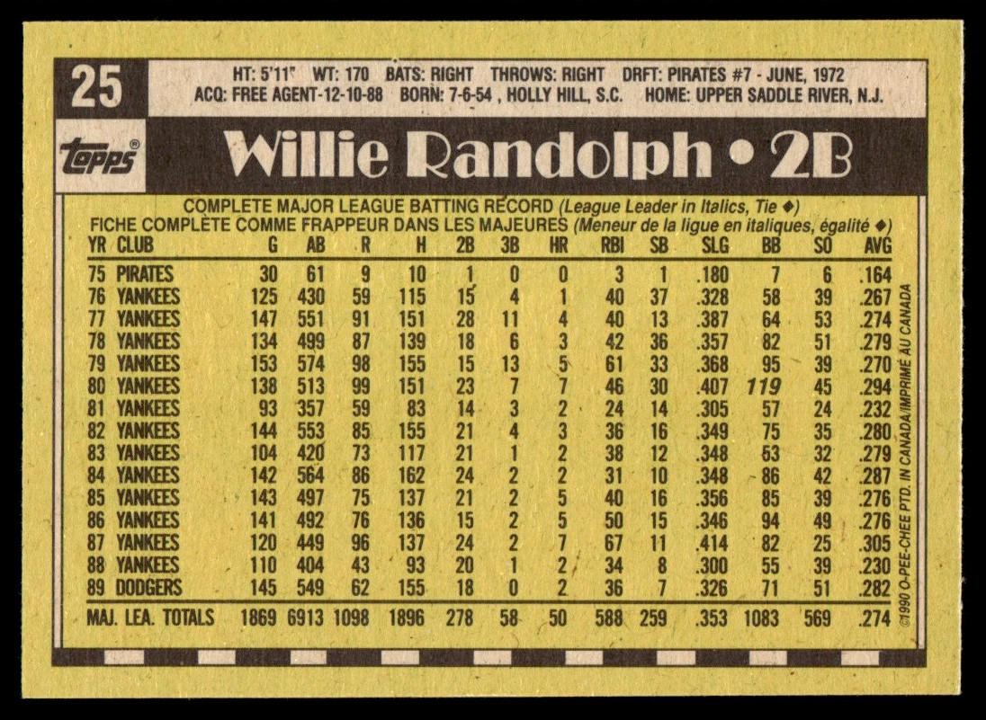 Full Price Guide: Willie Randolph #25 (1990 Topps)
