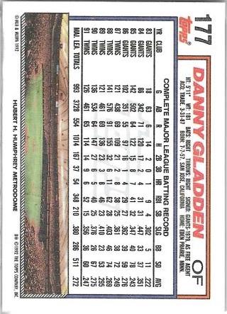 Danny Gladden 1992 Topps Baseball Card #177 Minnesota Twins #177 [eBay] | $1.55 | Report It | |