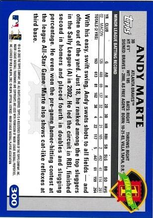 2003 TOPPS RC #300 ANDY MARTE ATLANTA BRAVES #300 [eBay] | $1.00 | ||