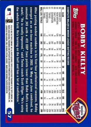 2003 Topps #57 BOBBY KIELTY Minnesota Twins #57 [eBay] | $1.70 |