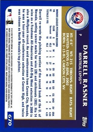 2003 Topps Draft Pick Darrell Rasner RC Montreal Expos #670 #670 [eBay] | $1.39 |