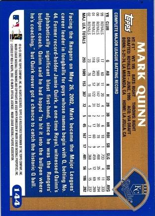 Mark Quinn #144 (2003 Topps) Details