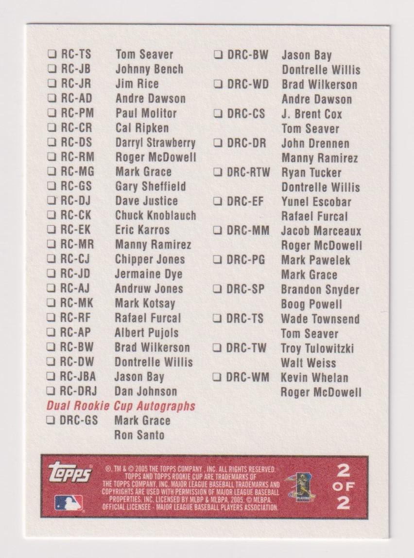 Full Price Guide: Checklist #2 (2005 Topps Rookie Cup)