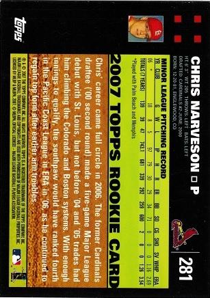 2007 TOPPS CHRIS NARVESON RC #281 #281 [eBay] | $0.11 | Report It |