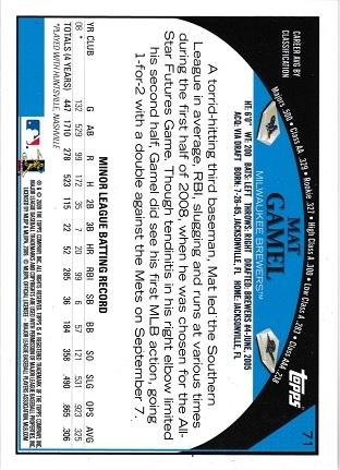 Mat Gamel - 2009 Topps - # 71 - ROOKIE - Brewers [eBay] | $0.06 | Report It | |
