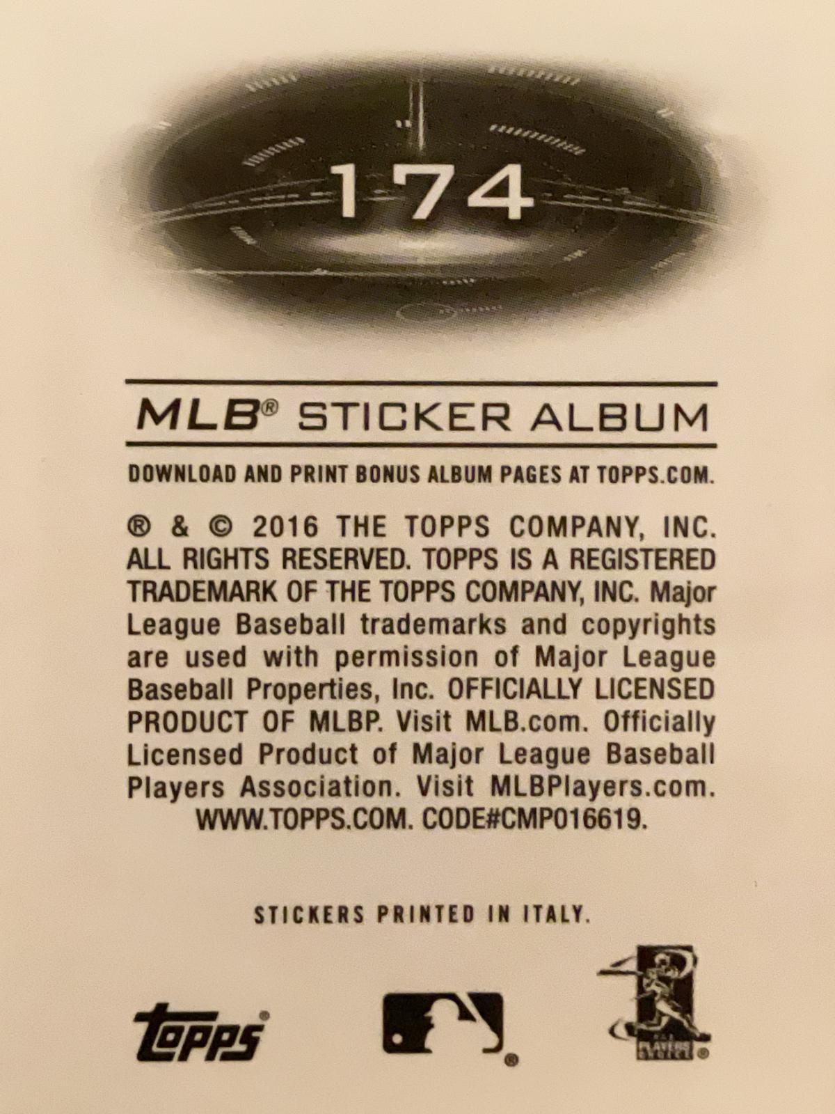 Nick Markakis #174 (2016 Topps MLB Sticker) Details