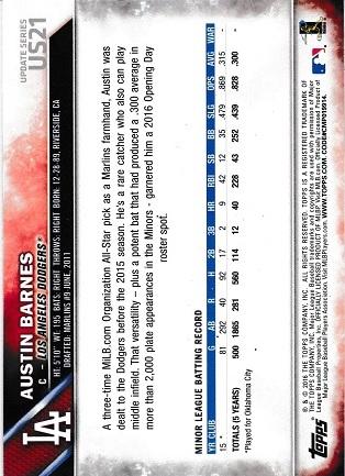 Full Price Guide: Austin Barnes #US21 (2016 Topps Update)