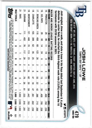 Josh Lowe #479 (2022 Topps) Details
