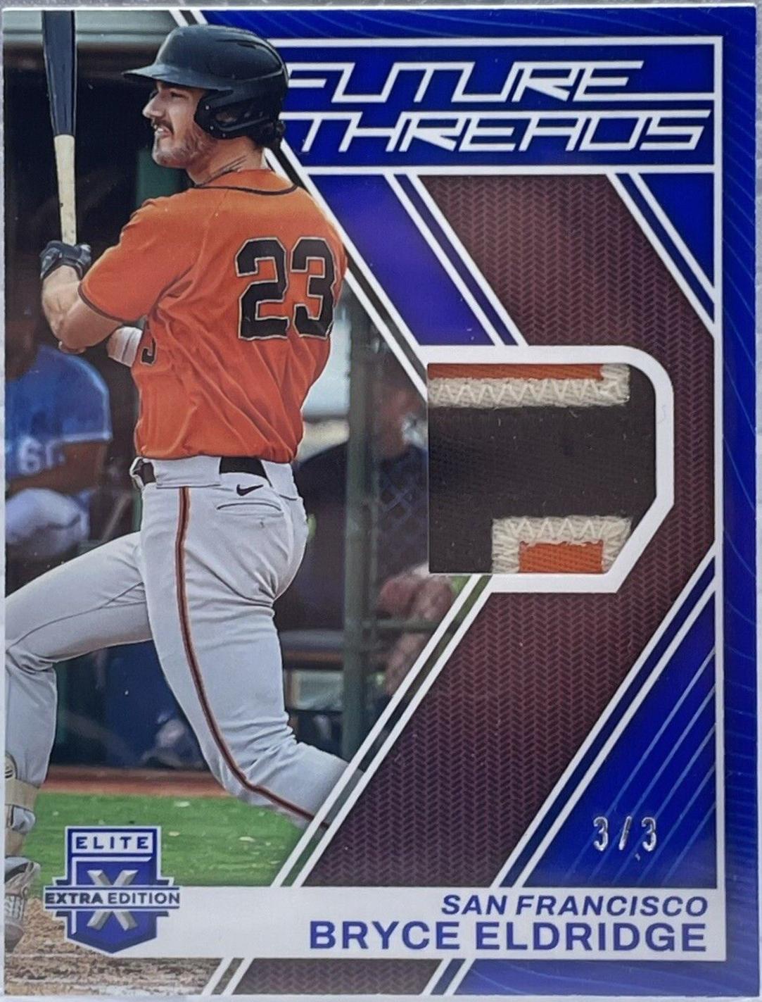 More Photos: 2023 Panini Elite Extra Edition Future Threads: Bryce Eldridge [Blue] #FT-BE | Baseball Cards
