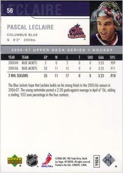 Pascal Leclaire #56 (2006 Upper Deck) Details