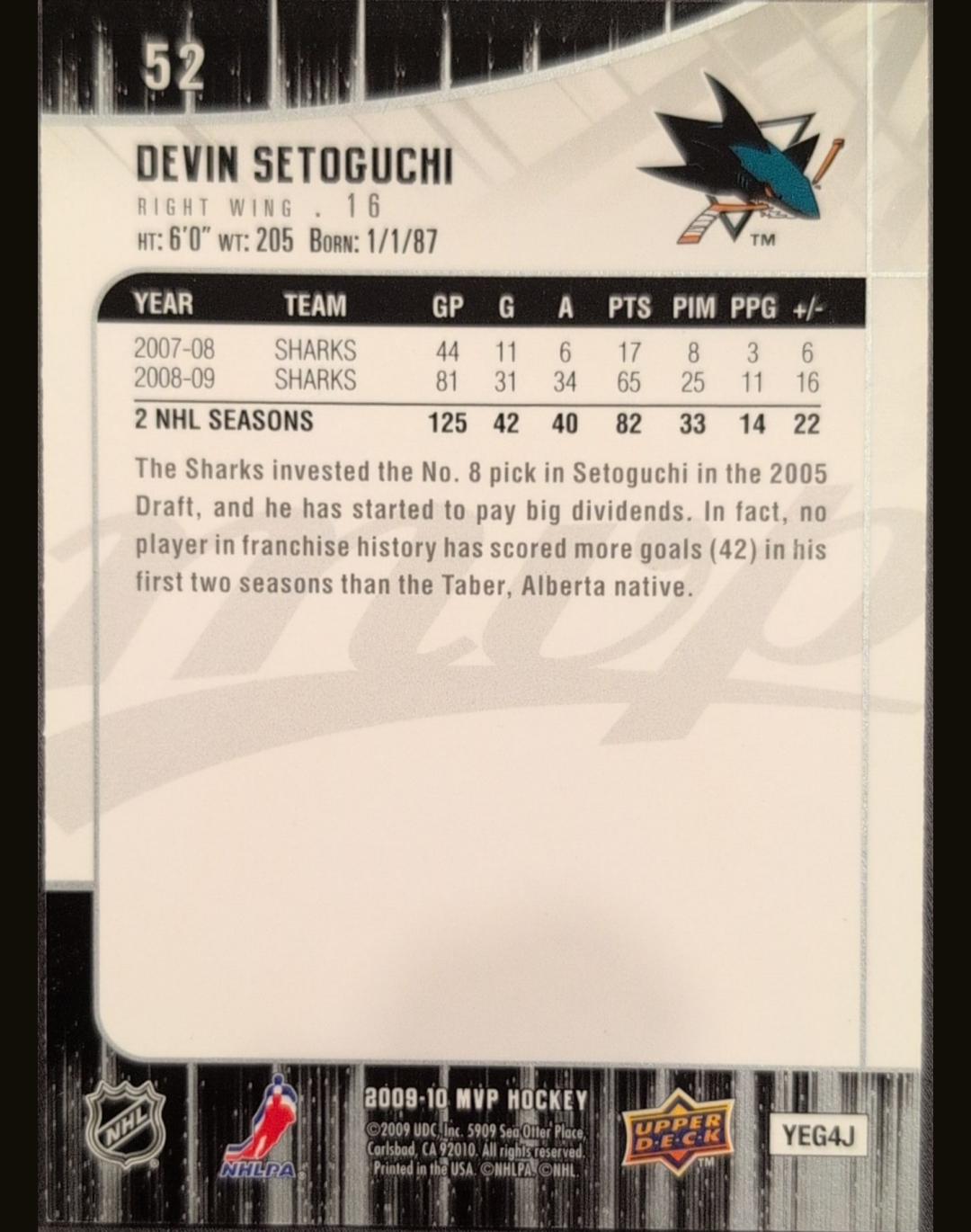 Devin Setoguchi #52 (2009 Upper Deck MVP) Details